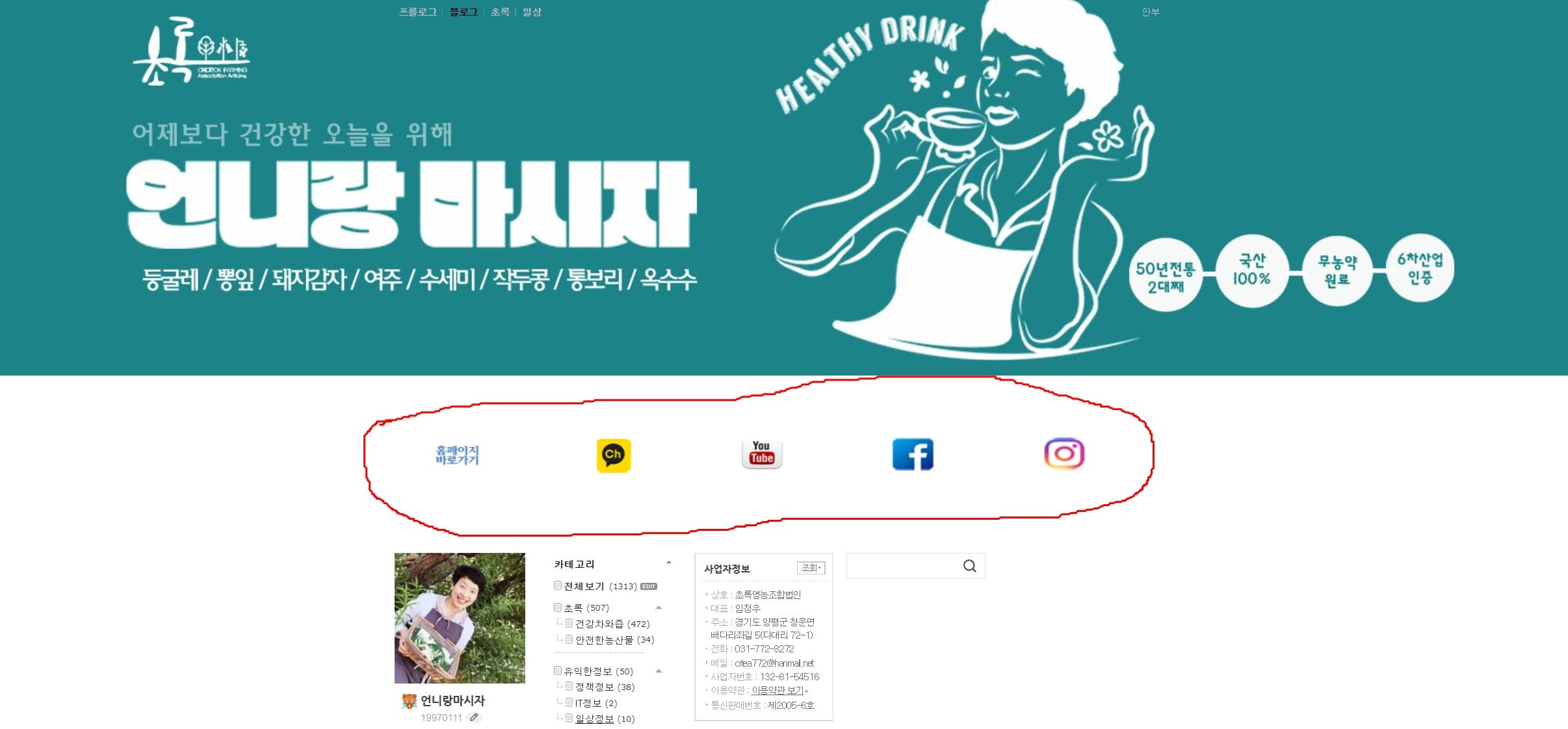 기업이나 개인이 운영하고 있는 sns 아이콘을 만들어서 블로그 상단에 노출하여 고객을 더 쉽게  유입시키는 방법입니다