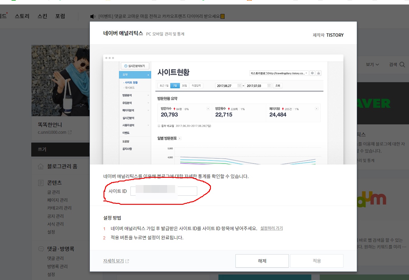 네이버에널리틱스티스토리등록방법