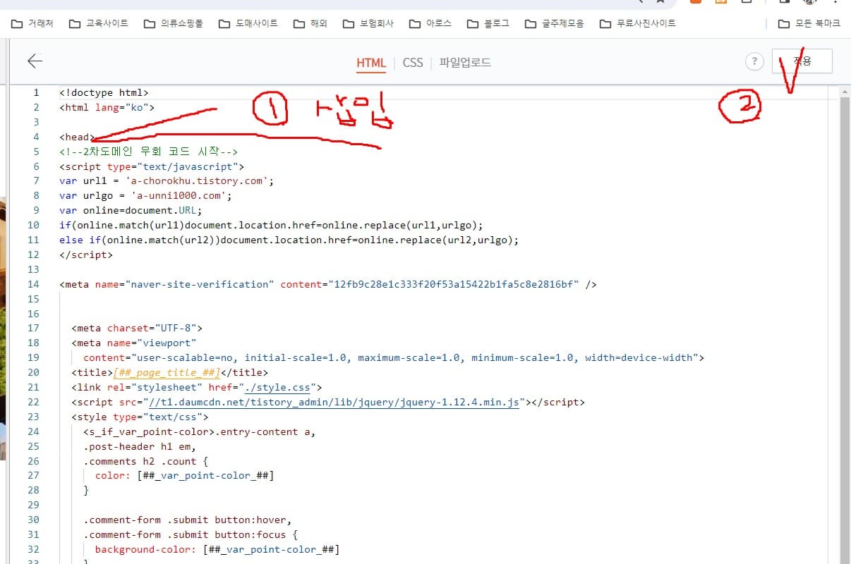 ⑥ 복사한 태그 ③번을 <head> 아래에 붙여넣기를 한 후 적용합니다