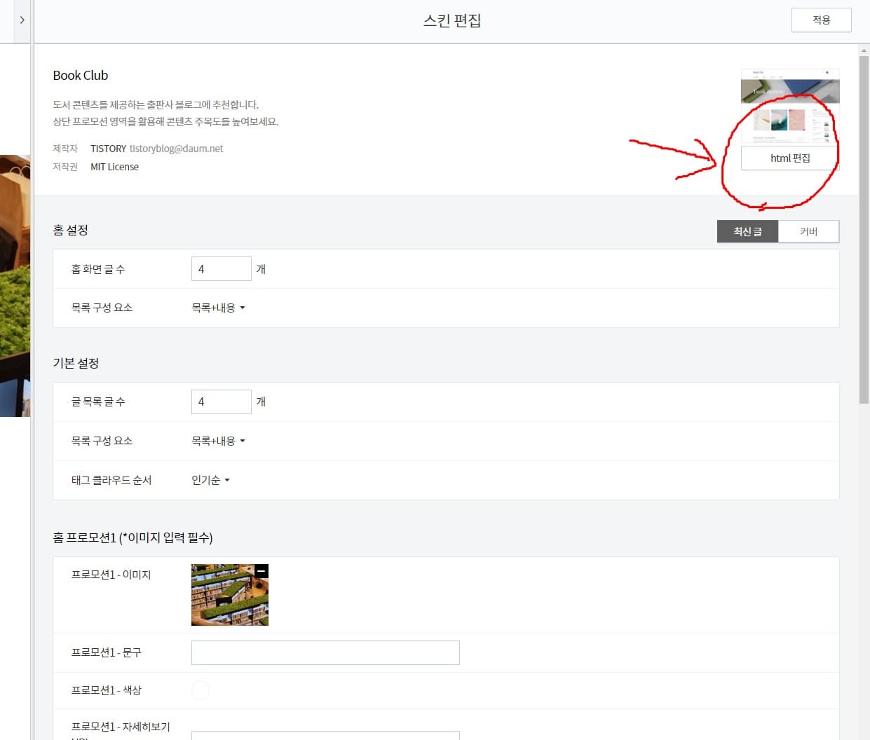 ④ 티스토리 관리자모드에서 스킨편집을 클릭합니다